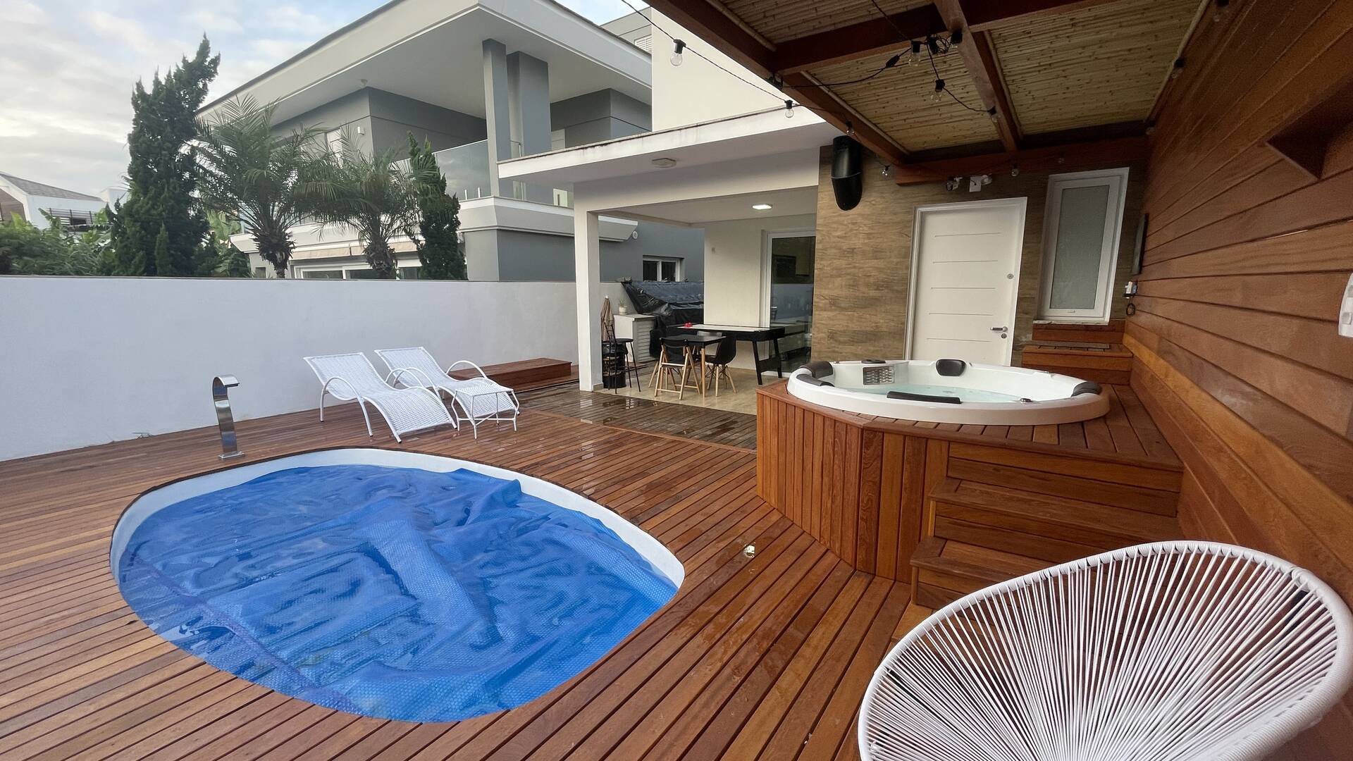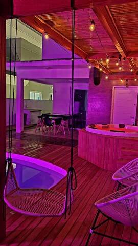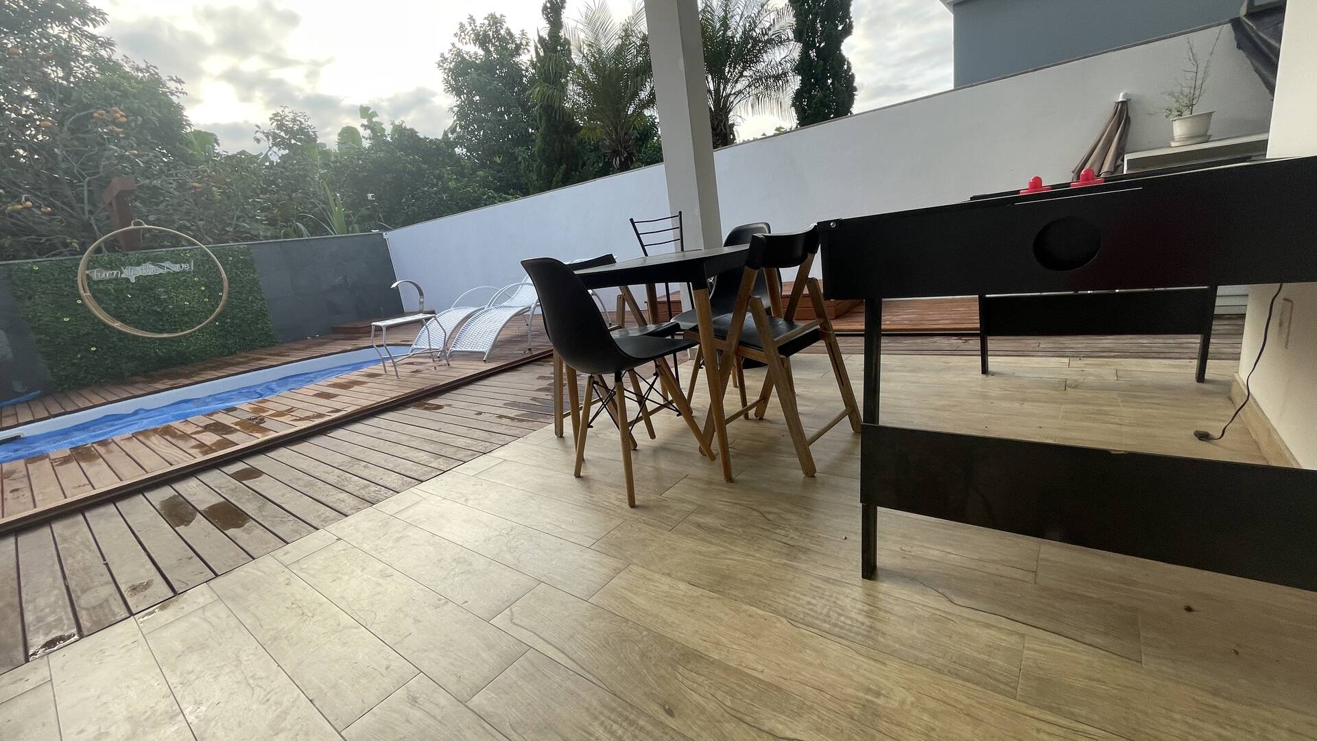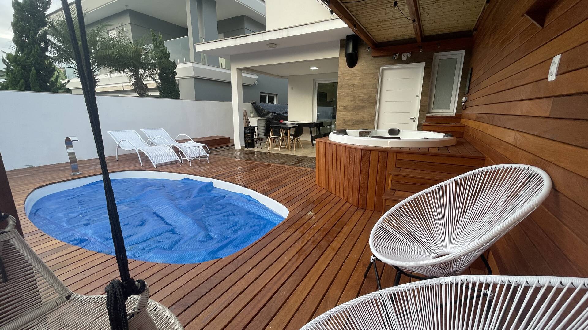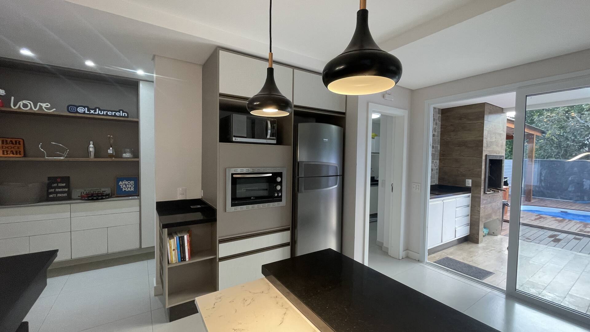 - Área de Entretenimento Completa: Desfrute de uma sala de estar acolhedora, uma cozinha de alto padrão e uma área de lazer espetacular, completa com piscina, jacuzzi, mesa de sinuca e um telão de cinema para momentos inesquecíveis.