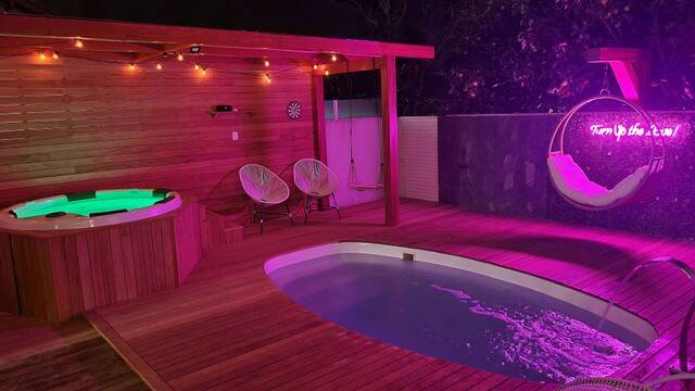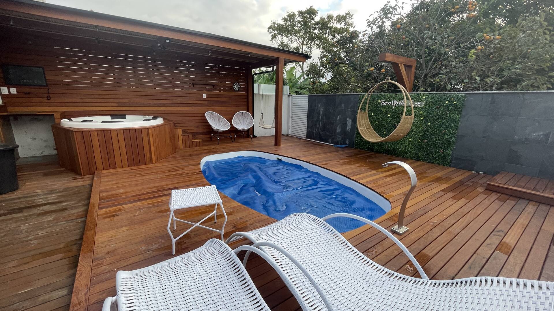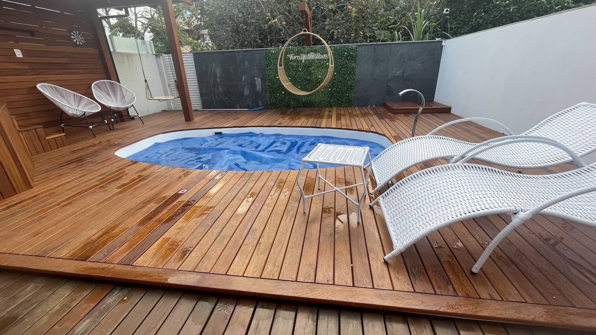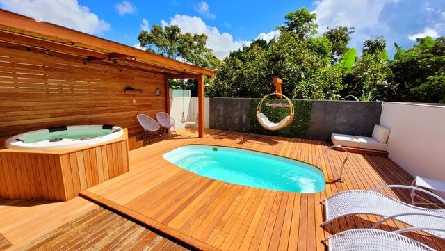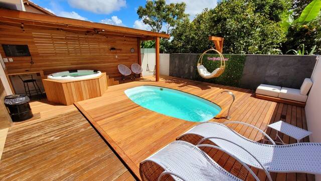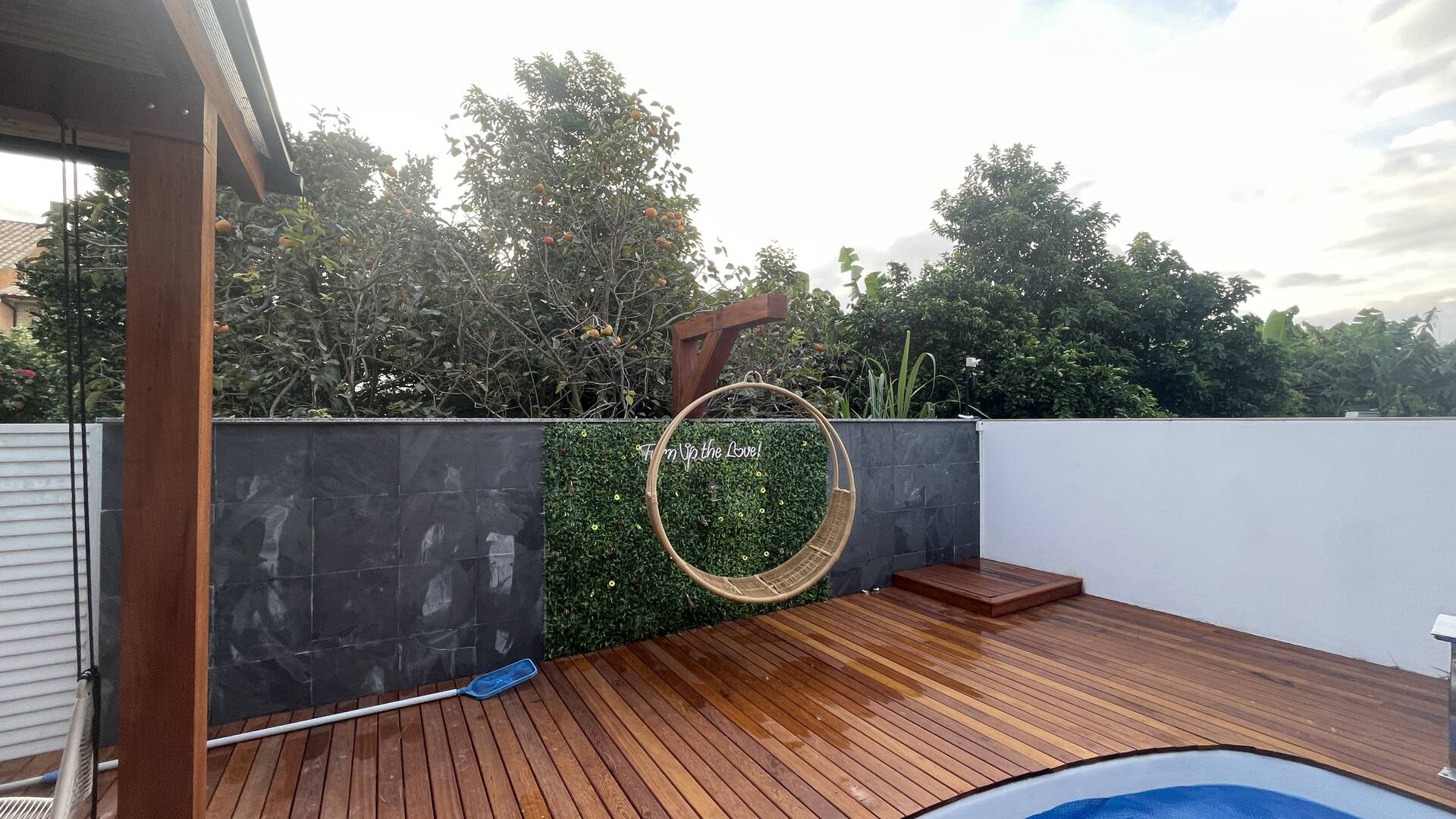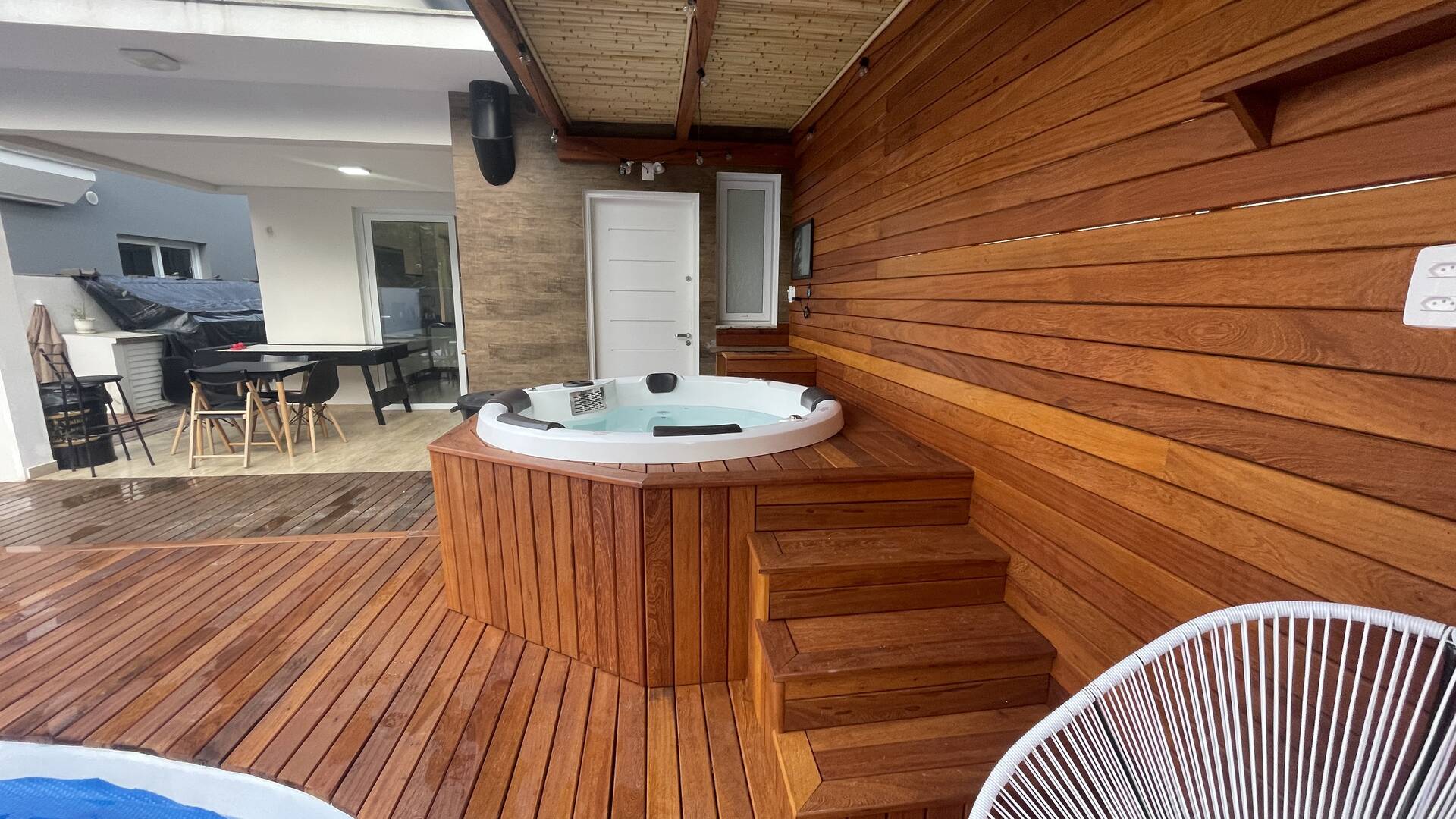 - Área de Entretenimento Completa: Desfrute de uma sala de estar acolhedora, uma cozinha de alto padrão e uma área de lazer espetacular, completa com piscina, jacuzzi, mesa de sinuca e um telão de cinema para momentos inesquecíveis.