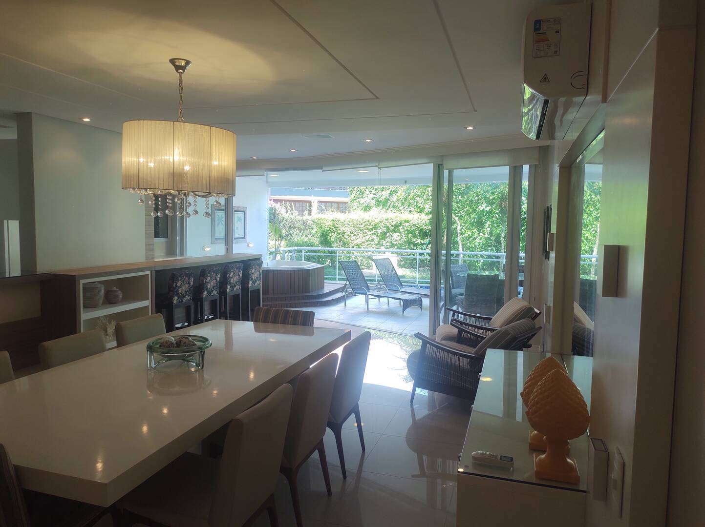 A área externa é um dos grandes diferenciais deste imóvel. A varanda gourmet integrada à piscina privativa com spa e ofurô cria um ambiente perfeito para lazer e momentos especiais com família e amigos, trazendo o conceito de casa dentro do condomínio. O apartamento conta ainda com projeto de iluminação sofisticado, sistema de som ambiente embutido no forro de gesso, cozinha espaçosa totalmente equipada, lavabo e três vagas de garagem cobertas. O imóvel está completamente mobiliado e decorado, pronto para morar, com excelente posição solar e vista privilegiada para as áreas de lazer do condomínio.
