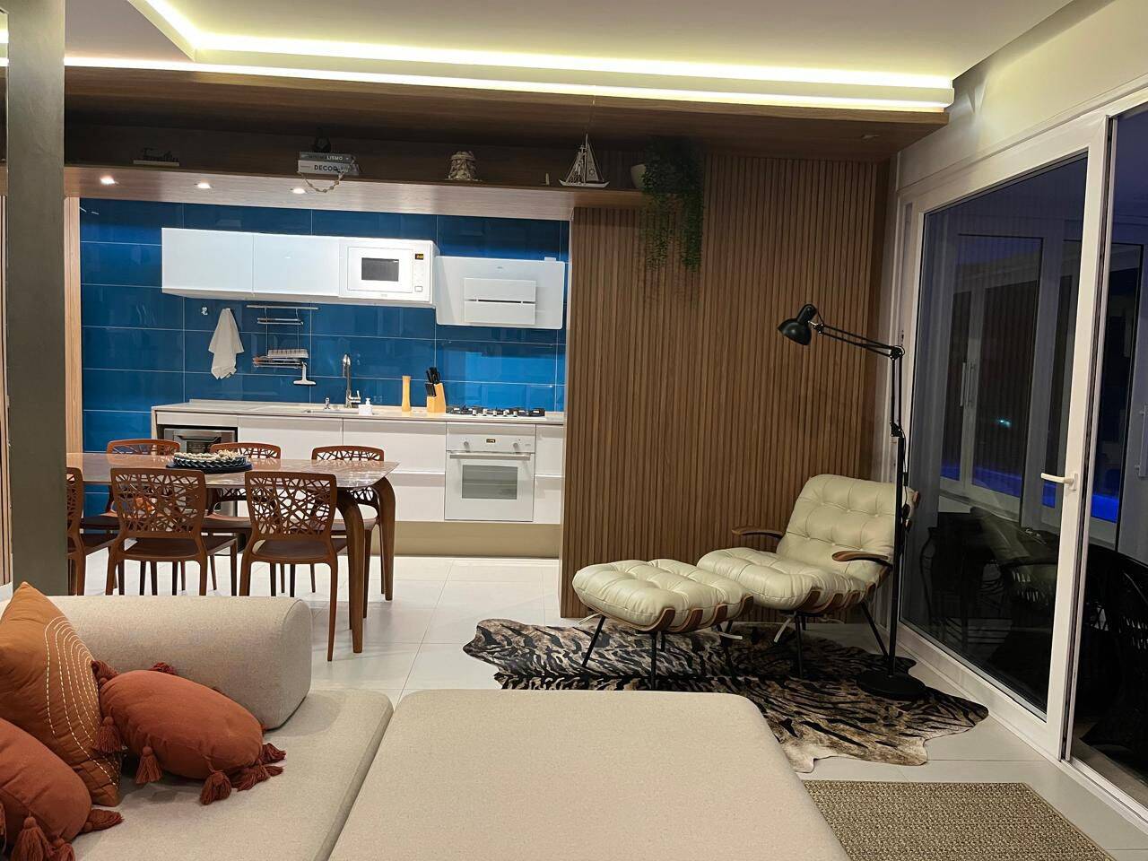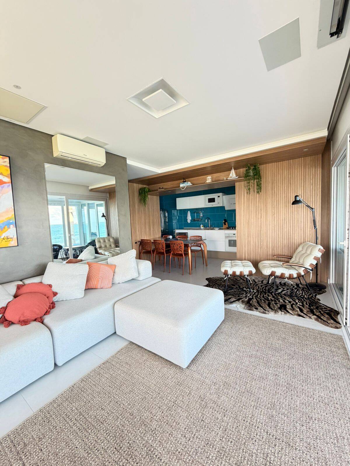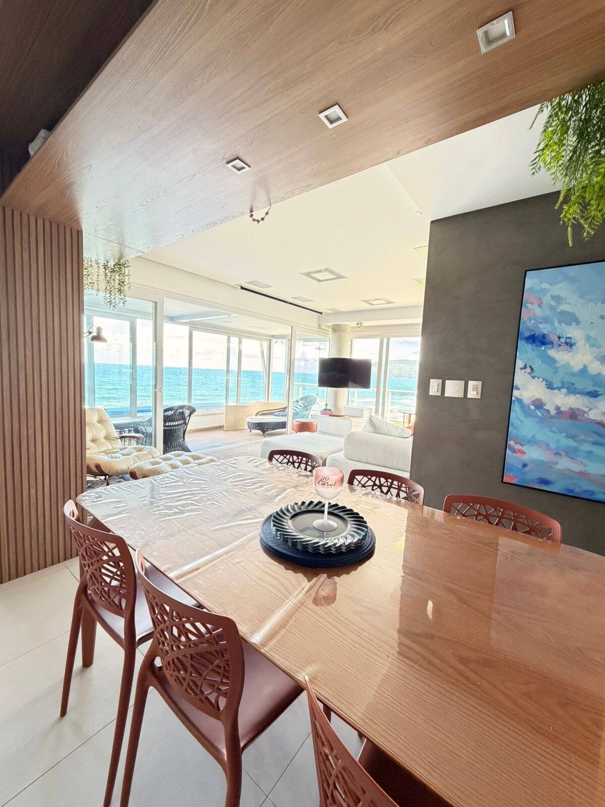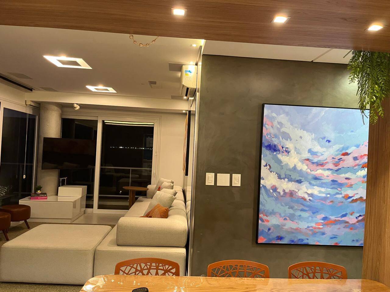 O living é espaçoso e integrado, com sala de estar e jantar que se conectam harmoniosamente, criando um ambiente sofisticado e acolhedor. A vista é simplesmente espetacular, proporcionando uma atmosfera única todos os dias. A decoração moderna e o mobiliário de alto padrão tornam o imóvel ainda mais exclusivo.