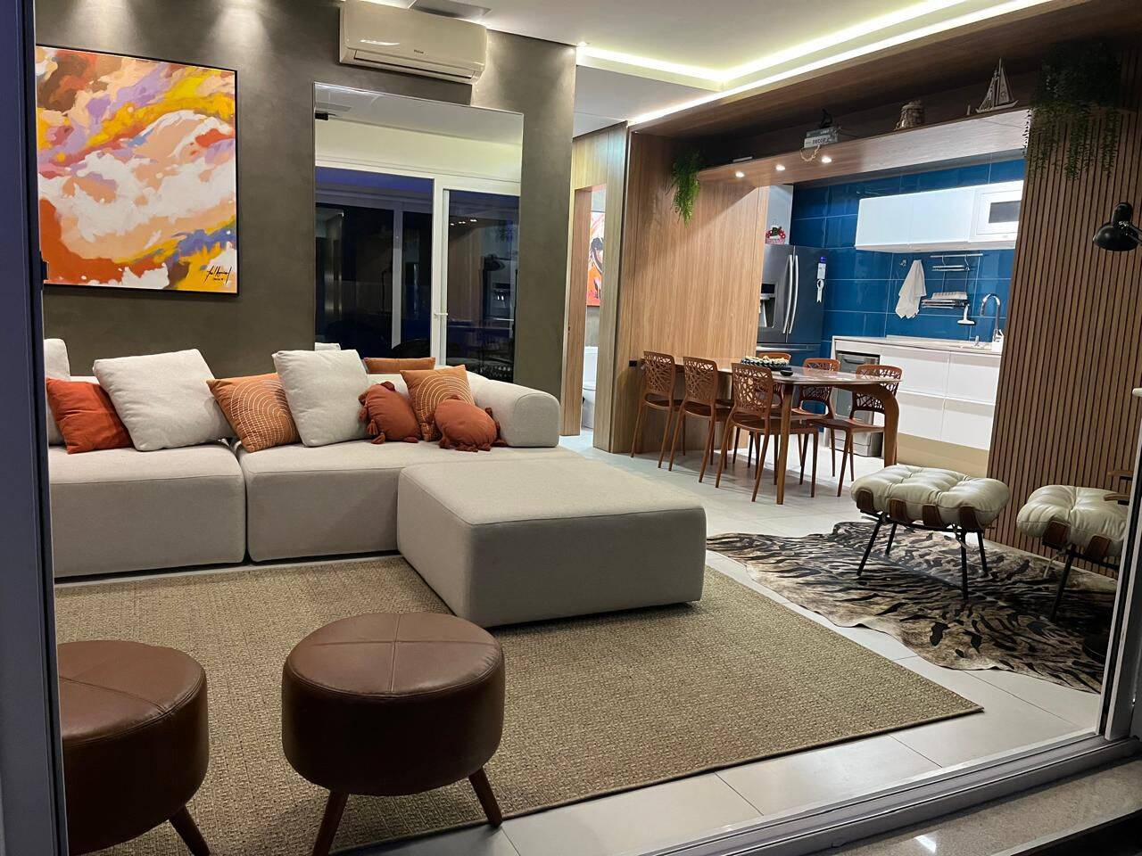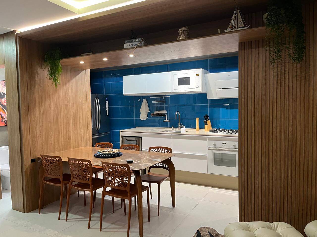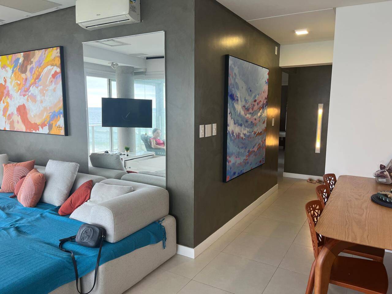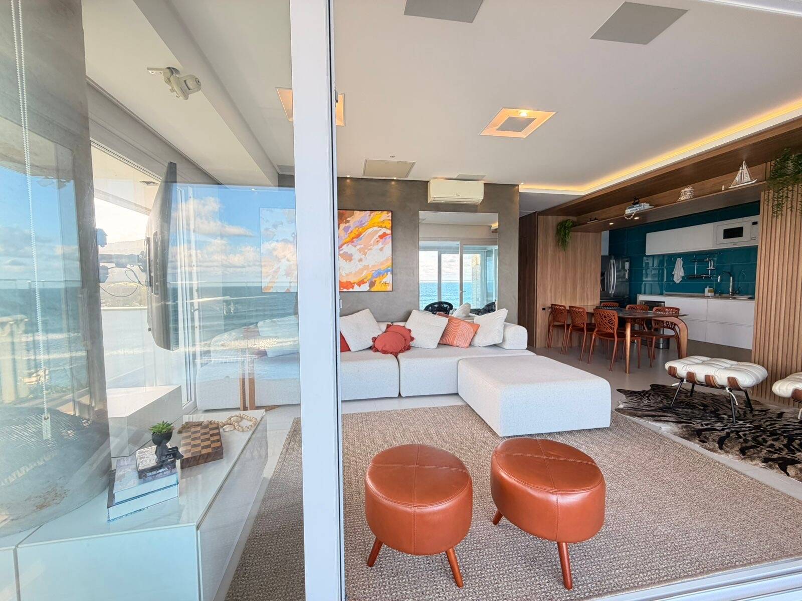 O living é espaçoso e integrado, com sala de estar e jantar que se conectam harmoniosamente, criando um ambiente sofisticado e acolhedor. A vista é simplesmente espetacular, proporcionando uma atmosfera única todos os dias. A decoração moderna e o mobiliário de alto padrão tornam o imóvel ainda mais exclusivo.